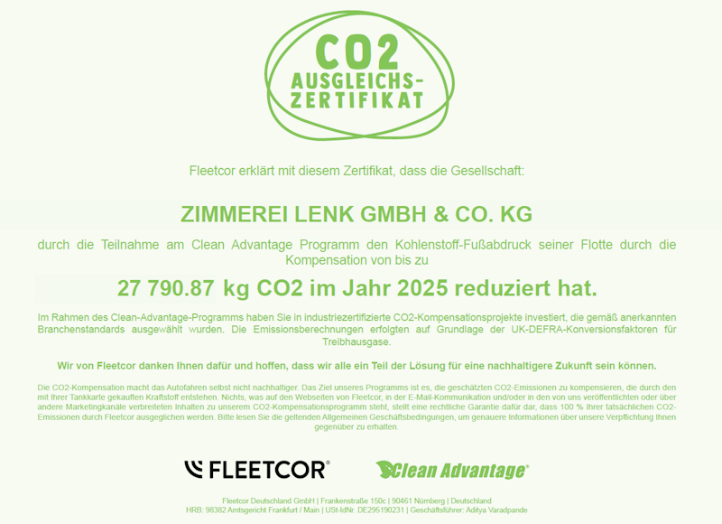 CO2-Ausgleichs-Zertifikat von Fleetcor Deutschland GmbH